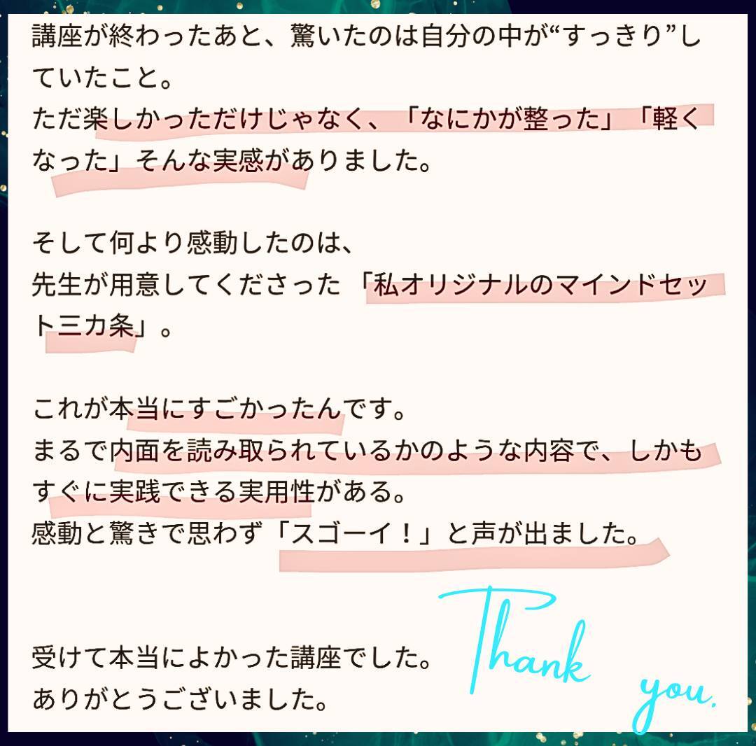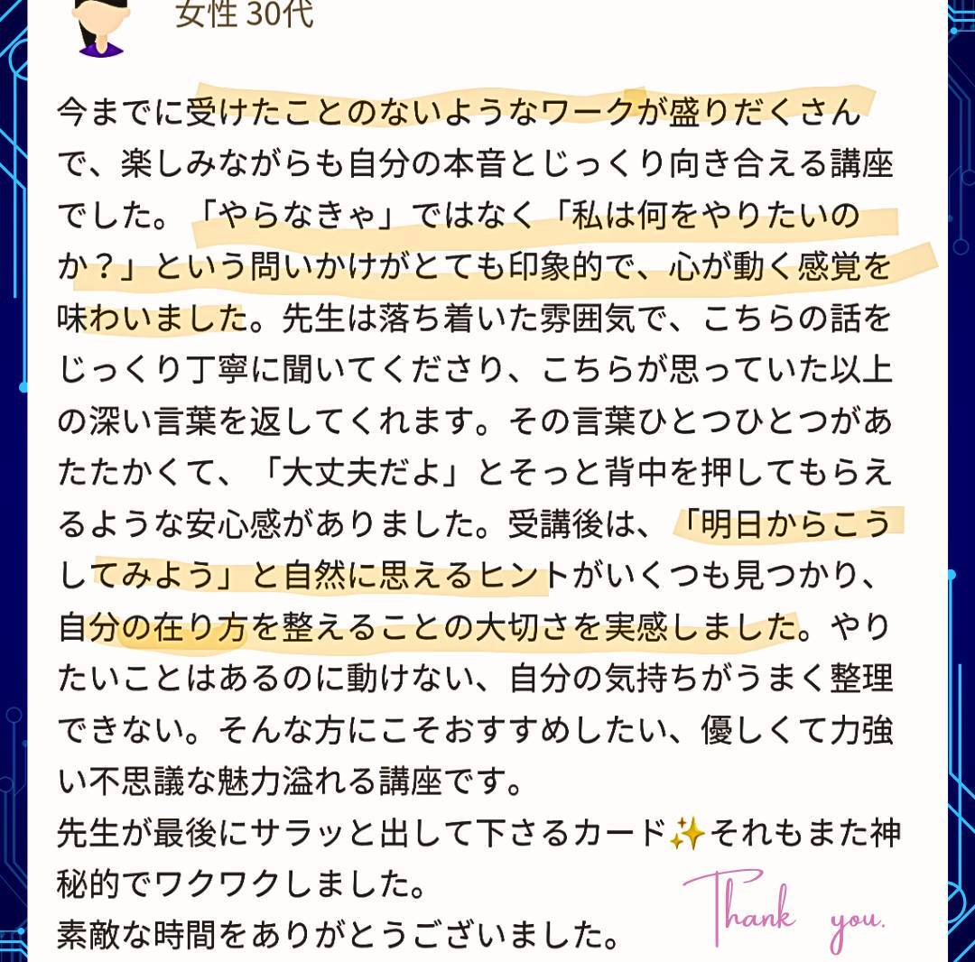 理想の未来はあるけれど、心のどこかにモヤモヤがある方にはぜひ受けてほしい講座です。本当にありがとうございました!